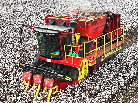 4MZD-3C型,自走式圆捆打包棉花收获机由新疆z6com人生就是搏自主研发生产可一次性可完成对棉花的采摘、输送、集箱打包、卸棉...