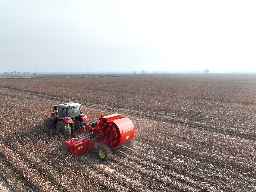 4MZD-4A型自走式圆捆打包棉花收获机由新疆z6com人生就是搏自主研发生产,可一次性完成对棉花的采摘、输送、集箱、打包、卸棉...